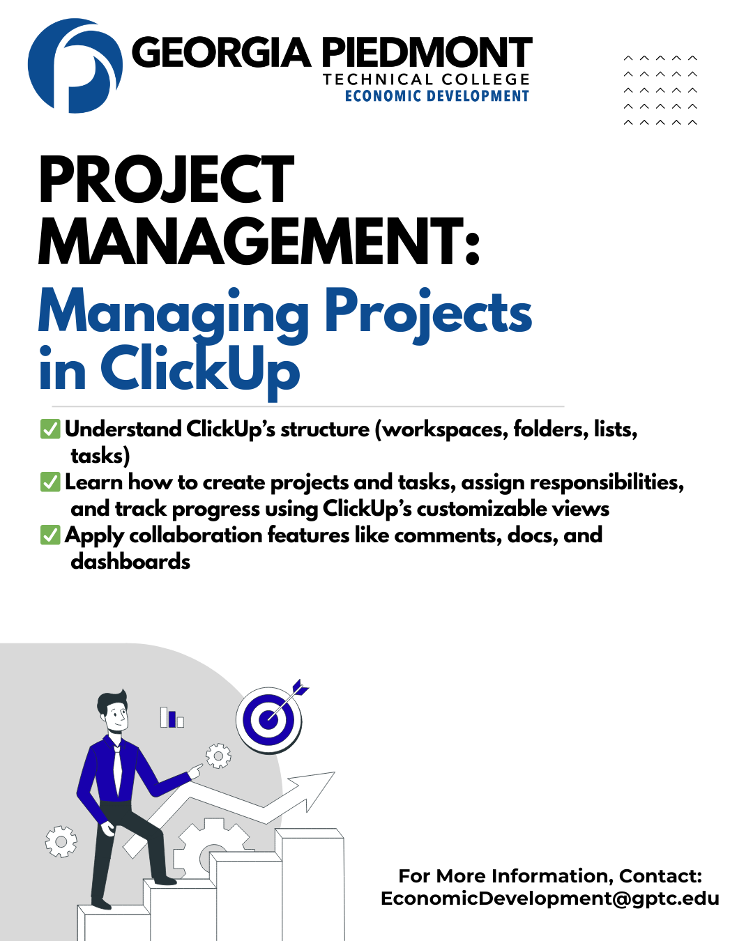 Ready to take your organization and leadership skills to the next level? Join us for Managing Projects using ClickUp, an interactive workshop designed to help you plan, organize, and deliver successful projects — every time.